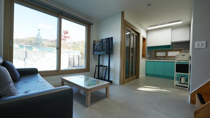 Innkvartering for 6–18 personer Det er et stort privat pensjonat egnet for store familier eller flere team, firmafester, osv. Ligger rett ved sjøen. Det panoramiske havet, fantastiske solnedganger om kvelden, og utsikten til Gyodong Bridge er også de beste. Grillen er et selvstendig sted, noe som gir ubegrenset komfort til omgivelsene dine.