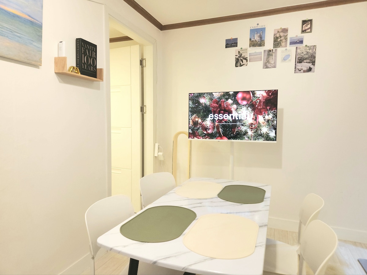 Gamsung 3 rom | 2 toaletter | Elve · 5 minutter til stasjonen · 15 minutter til Dongdaemun · 25 minutter til Myeongdong · Opptil 8 personer · Vennegjenger · Bukhansan · Tørketrommel