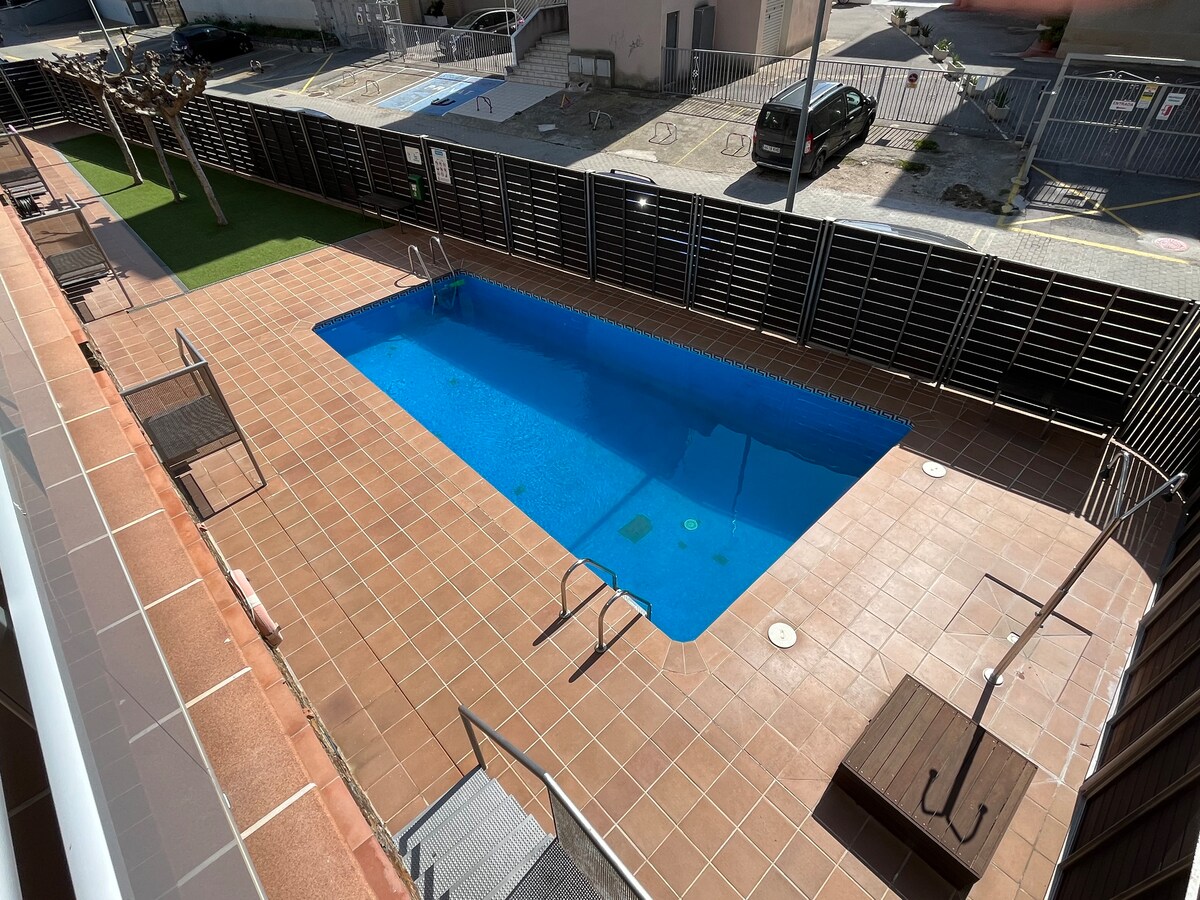 Familie-leilighet med basseng 10 minutter fra sjøen til fots