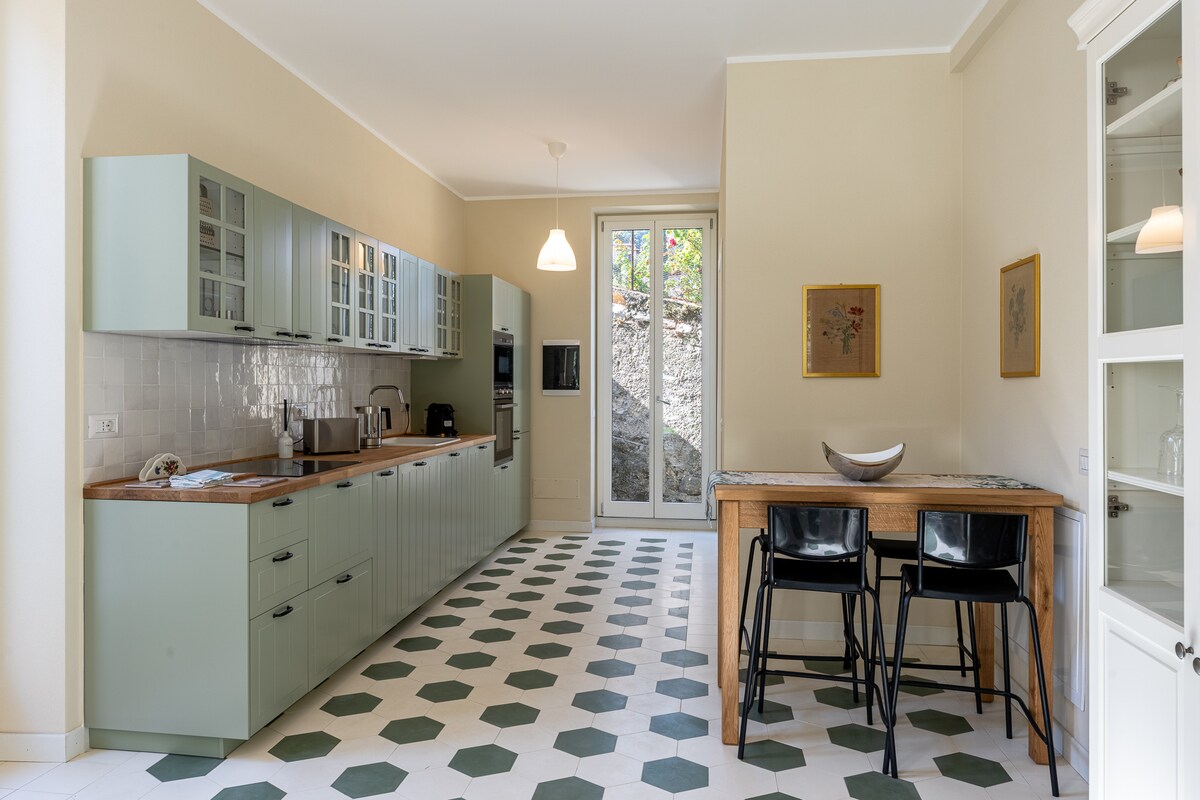 Uhindret utsikt over innsjøen fra en vakkert restaurert leilighet fra 1800-tallet, perfekt plassert på strandpromenaden i Lenno, Tremezzina. Bare 200 meter fra fergehallen med direkte forbindelser til Bellagio, Varenna, Villa Carlotta og den middelalderske, ommurte byen Como. En enkel spasertur til både Villa Balbianello og Villa Balbiano. Slapp av med venner over en aperitivo i den elegante stuen, med originale stukkatak fra 1920-tallet, mens gardinene danser i brisen fra innsjøen. Ren Como-bolig.