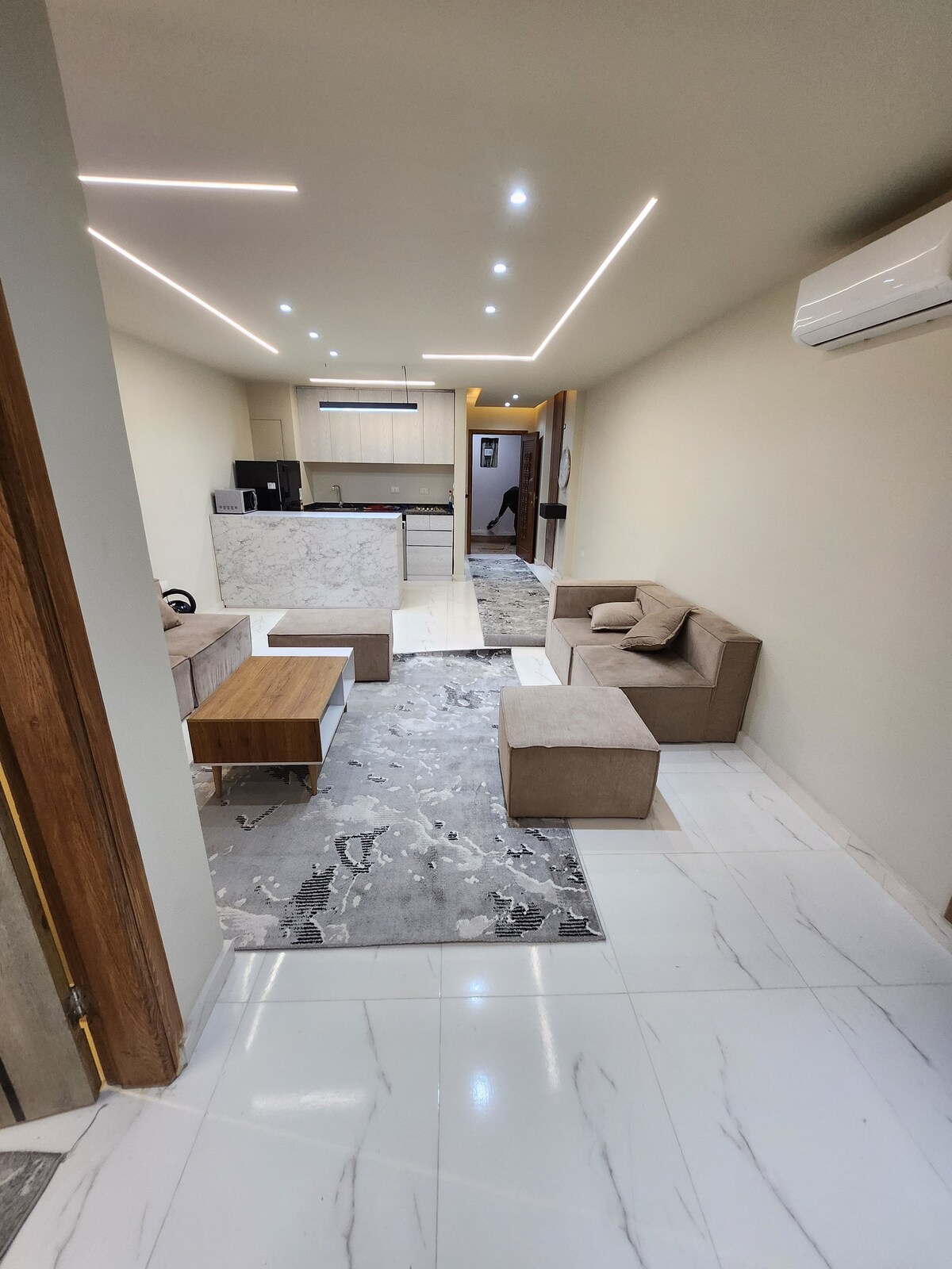 Denne boligen er fullt utstyrt med alt du trenger. Alt er nytt. Utmerket beliggenhet nær flyplassen i Kairo, nær Heliopolis, nær New Cairo, nær det største kjøpesenteret i Egypt, City Center Elmazza. Leiligheten er ny, ny belysning og komfortabel, du vil elske å være der. Det er veldig trygt, det er en tjeneste. 24-timers sikkerhet. Madrassene er på høyeste nivå av komfort. Det er ventilasjon. Solen kommer inn i hvert rom. Det er veldig sunt.