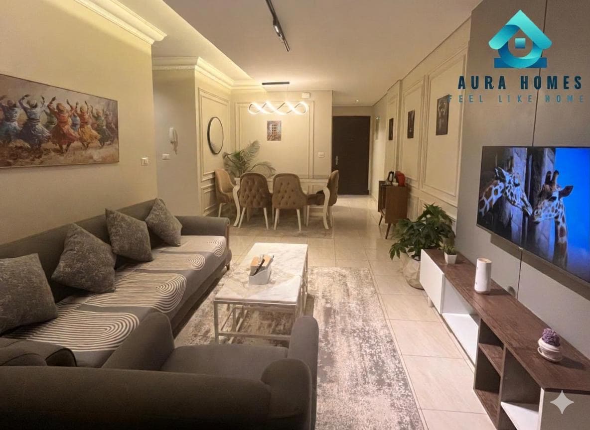 Velkommen til vår stilige leilighet med ett soverom: Send oss en melding for sesongbaserte og spesielle rabatter. ●Soverom (queen size + sovesofa) ●Stue (smart-TV + sofa) ●Spiseplass for tre ●Elegant bad. ●Fullt utstyrt tekjøkken. Beliggende i hjertet av byen, vil du være øyeblikk unna trendy kafeer, pulserende natteliv og de beste spisestedene. ●WaterWay 5A, ●Distrikt 5 Marakez ●Uavenues ●Kjøreturen ●Katameya ●Garden 8 ●El Malahy ●CFC ●Arabella og mange andre steder. Kontakt oss for flere anbefalinger.