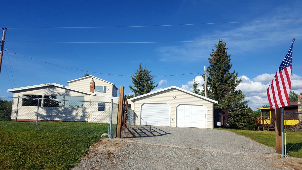 Kingsize-seng, sovefuton, boblebad, inngjerdet, tretopphus, leirbål, grill og raskt trådløst nettverk. Hundevennlig og perfekt for par eller små familier som er på utkikk etter koselig Montana-sjarm i nærheten av Glacier. Se på hjort og kalkun som beiter i frukthagen, eller barna dine som leker i tretopphuset, fra den overbygde verandaen mens solen går ned bak fjellene. Deretter kan du nyte marshmallows og se på stjernene fra boblebadet. Eies og drives av lokalbefolkningen med alle tips og anbefalinger! Dette er Airbnb-stedet du leter etter.