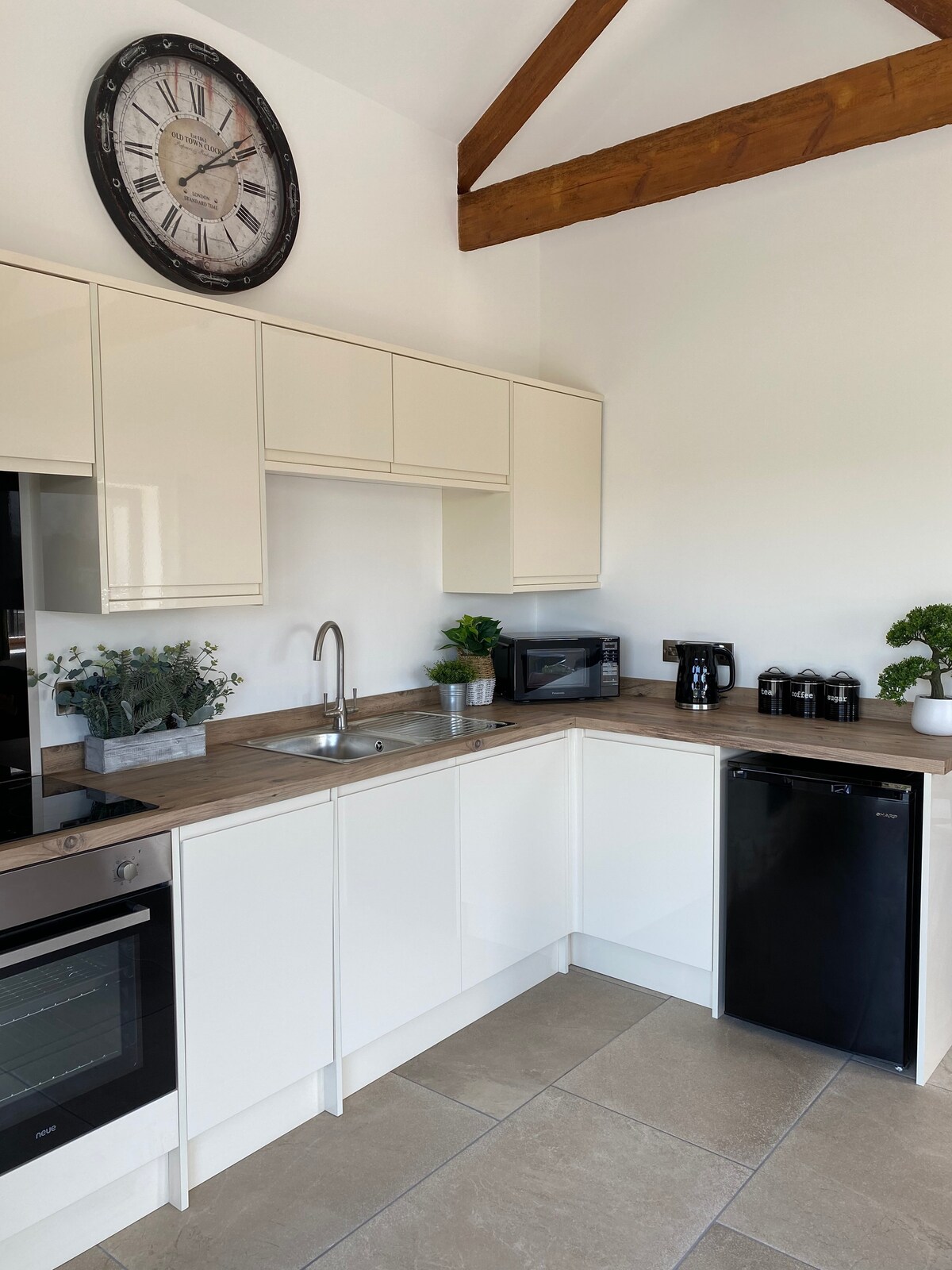 Lakeside Barn er en nyoppusset, luksuriøs og moderne låve med ett soverom. Den har beholdt sine opprinnelige sjarmerende funksjoner, som høyt tak og bjelker. Lakeside Barn består av et åpent kjøkken/stue/spisestue som fører til et romslig dobbeltsoverom og et moderne, stilig bad. Gulvet er flislagt overalt med koselig varmekabler. Rundt låven er det en stor terrasse med utsikt over den vakre innsjøen vår, med fantastisk panoramautsikt over Somerset-landskapet.
