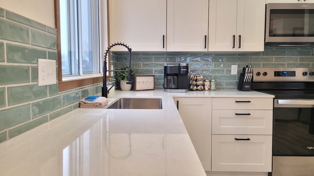 Hele hjemmet med to soverom i nærheten av sentrum av Fargo, NDSU, Civic Center, Fargo Dome og sentrum av Sanford Hospital. Huset er fullt utstyrt med raskt trådløst nettverk, smart-TV og kabel-TV. Det nyoppussede badet har dusjkabinett og gulvvarme. Kjøkkenet er klart til bruk med en Keurig-kaffemaskin og alle gadgets/små apparater du trenger under oppholdet. Dette stedet er flott for lengre opphold med parkering utenfor gaten, en uteplass på baksiden og en sedertredekk på forsiden.