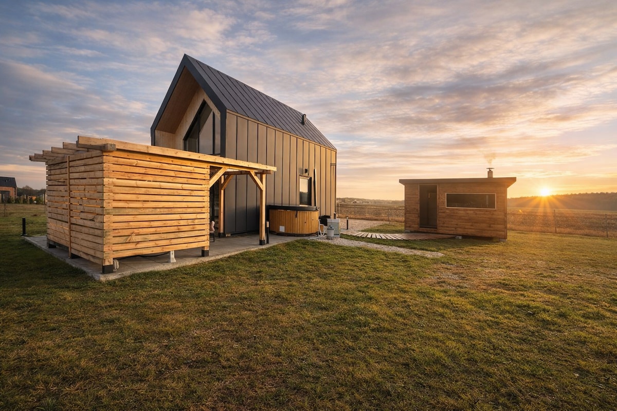Vi inviterer deg til vårt nye feriehus, som er ferdigstilt i høystandard i låvestil, og tilbyr moderne interiør og komfortable forhold. Ligger i en sjarmerende landsby. Under oppholdet vil du ha tilgang til mange fasiliteter, for eksempel oppvaskmaskin, helårsbadekar, basseng i sommersesongen, grill. For våre yngste gjester har vi forberedt en lekeplass hvor de kan leke på en huske, trampoline eller skyte fotballmål