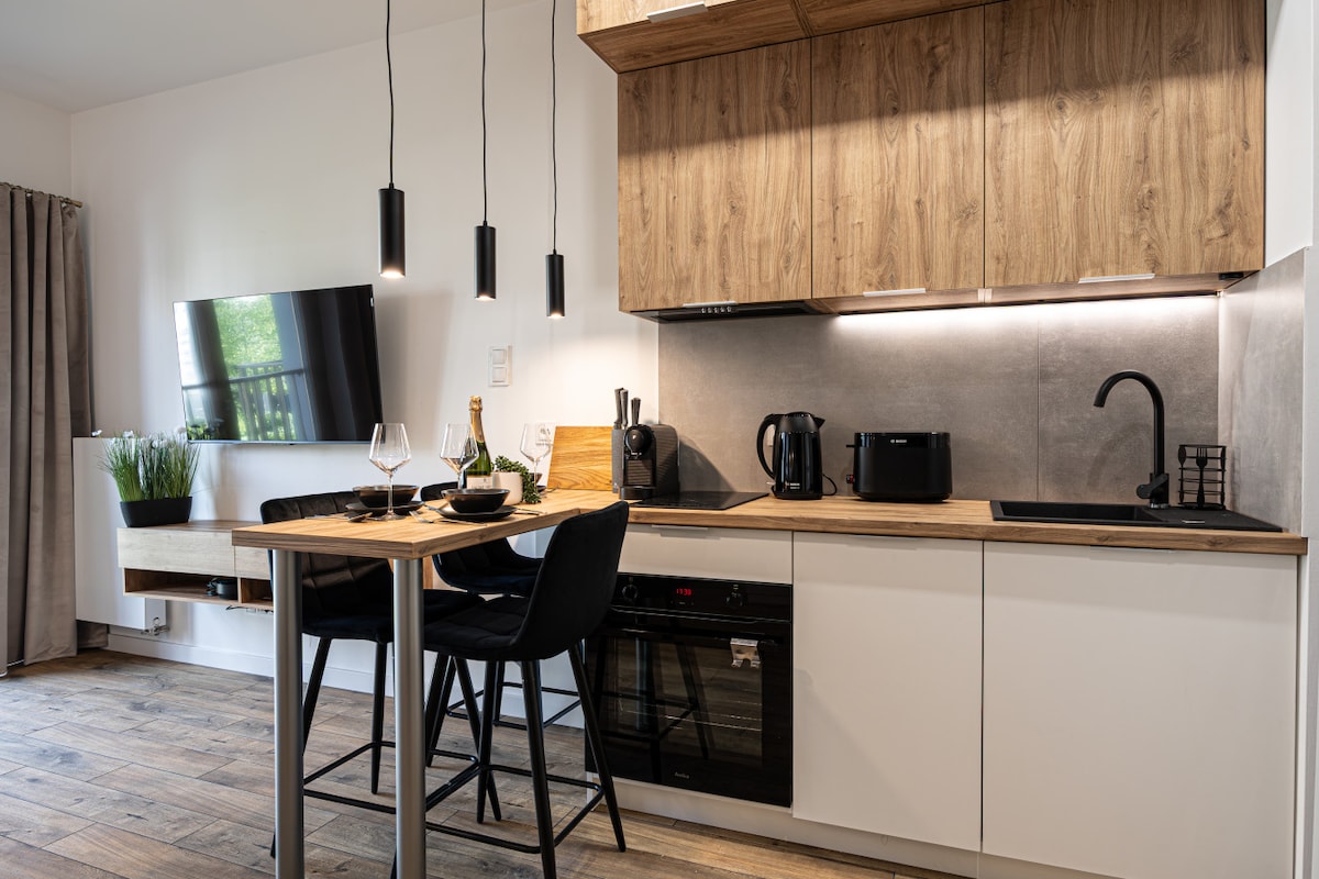 En gang en travel restaurant, i dag en unik leilighet i et restaurert leilighetshus fra begynnelsen av 1900-tallet i sentrum av Bydgoszcz er et sted hvor klassisk sjarm møter moderne komfort. Vi inviterer deg til et sted hvor originale arkitektoniske detaljer, som høy takhøyde, originale takbjelker og gjenvunnet tre, harmonisk blandes med moderne innredning og fasiliteter av topp kvalitet.