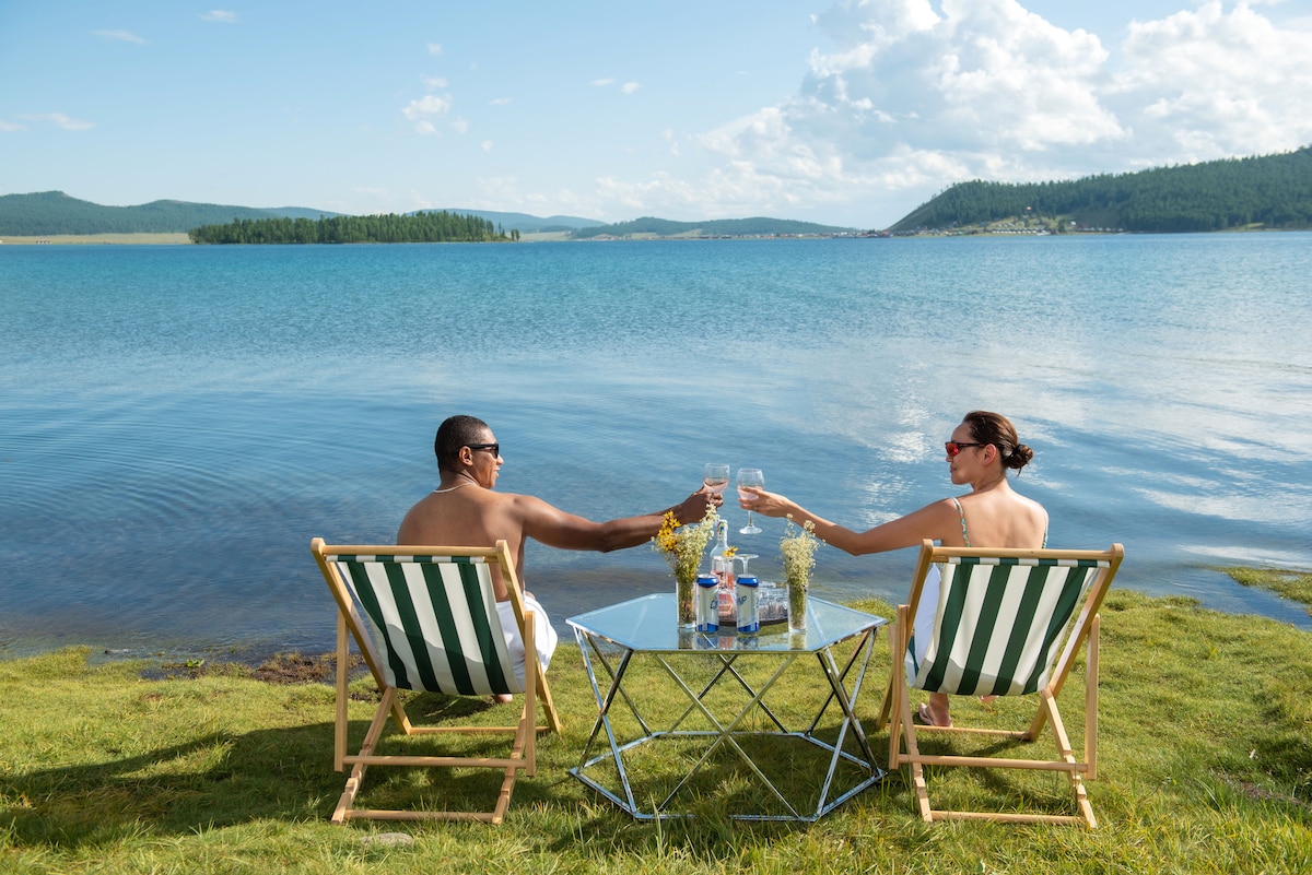 Experience the quiet luxury of Khuvsgul Lake from our singular, most secluded retreat. As the only suite of its kind at the resort, it sits perched on a private peninsula offering sweeping water views straight from your bed. Enjoy unparalleled privacy with a modern ensuite, guaranteed private sauna access, and priority boat transfers. A rare, seamless blend of wild Mongolian taiga and refined comfort. Experience our one truly exclusive lakeside escape before your dates disappear.