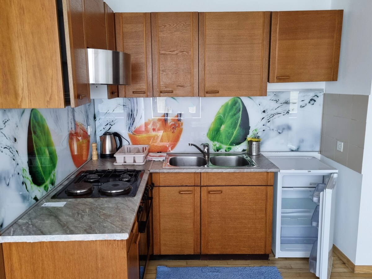 Leiligheten ligger i første etasje i huset i Kamnik ( 45 kvm og 7 kvm balkong), vendt bort fra gaten og er et utmerket utgangspunkt for utflukter rundt Slovenia, da den praktisk talt ligger i sentrum av Slovenia og omfavnet av Kamnik - Savinja-alpene. Nøkkelutveksling og innsjekking/utsjekking er i baren «fontana» i huset . Flyplass med bil 14 km ( 15 min ) Ljubljana med bil 20 km ( 25 min)