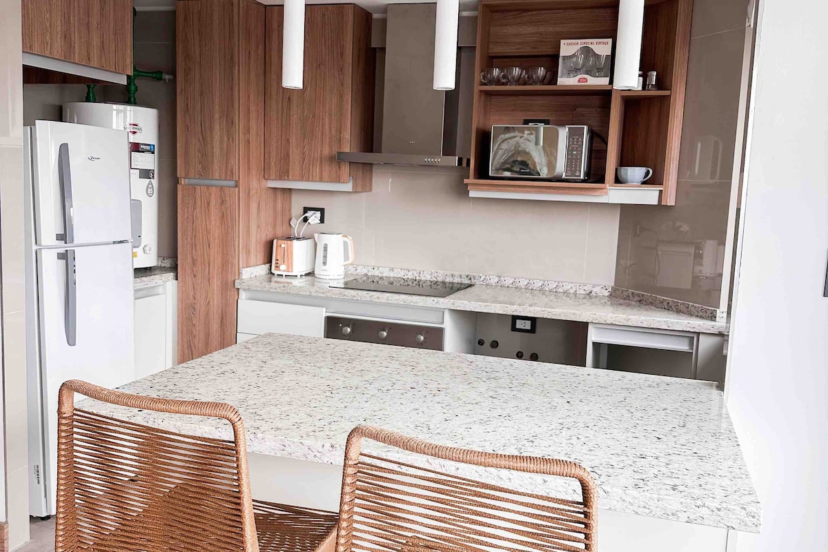Gjør oppholdet ditt til en uforglemmelig opplevelse. Leiligheten vår, som ligger noen få gater fra Parque General San Martín, er i tillegg til å være koselig og lys, en avslappende atmosfære. Fra den nøye dekorasjonen til panoramautsikten, er alt gjennomtenkt for å gi deg et unikt opphold. Uansett om du er her for forretninger eller fornøyelser, vil leiligheten vår bli ditt hjem borte fra hjemmet.Ikke gå glipp av muligheten til å nyte et helt spesielt opphold!