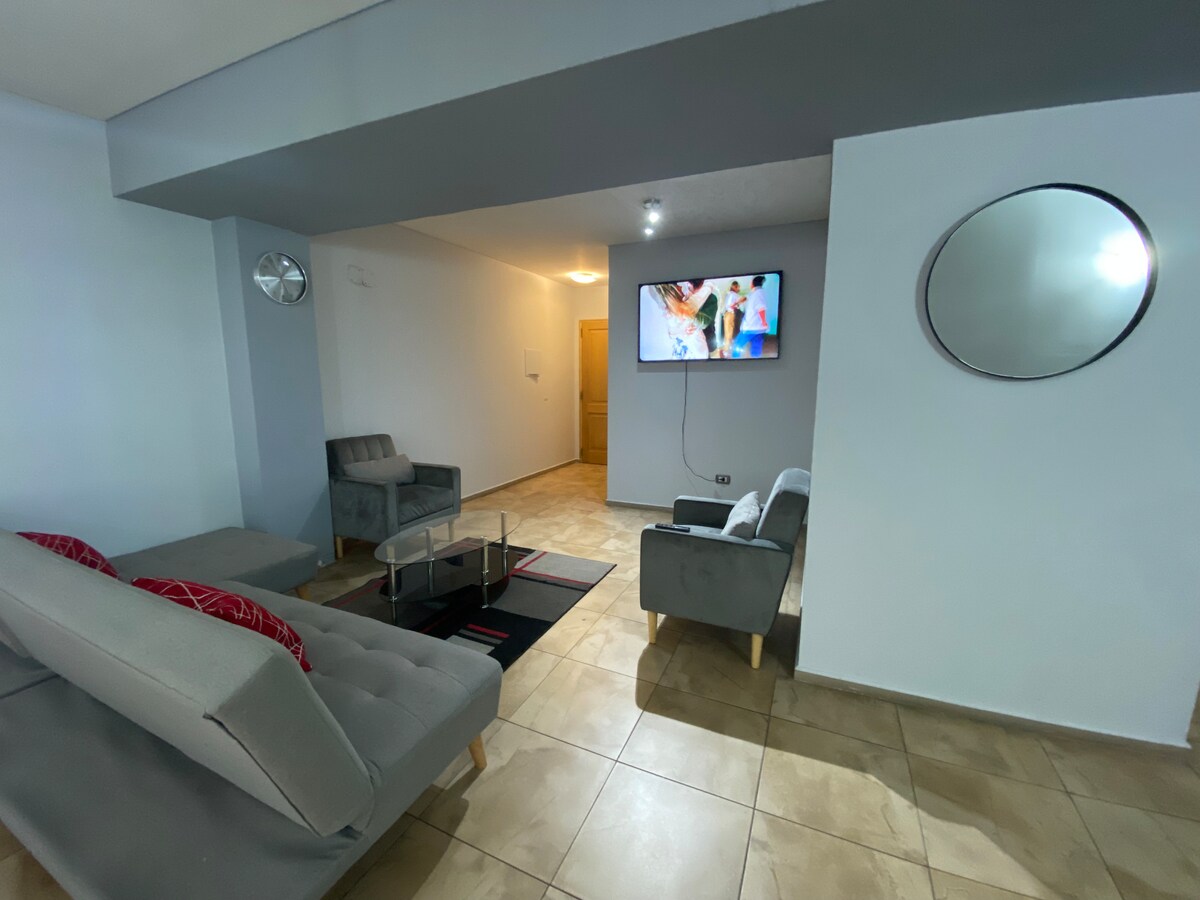 Leiligheten ligger i et privat kompleks, i første etasje med tilgang til trapper og panoramautsikt. Det er veldig lyst og romslig. Den har et rom med dobbeltseng og romslig plakat, bad, spisestue, separat kjøkken, balkong og garasje for et dekket guttkjøretøy. Bygningen har vakter og automatisk port for å gå inn i garasjen. Spisestuen og soverommet har klimaanlegg. Automatisk vask, strykejern, strykebrett,