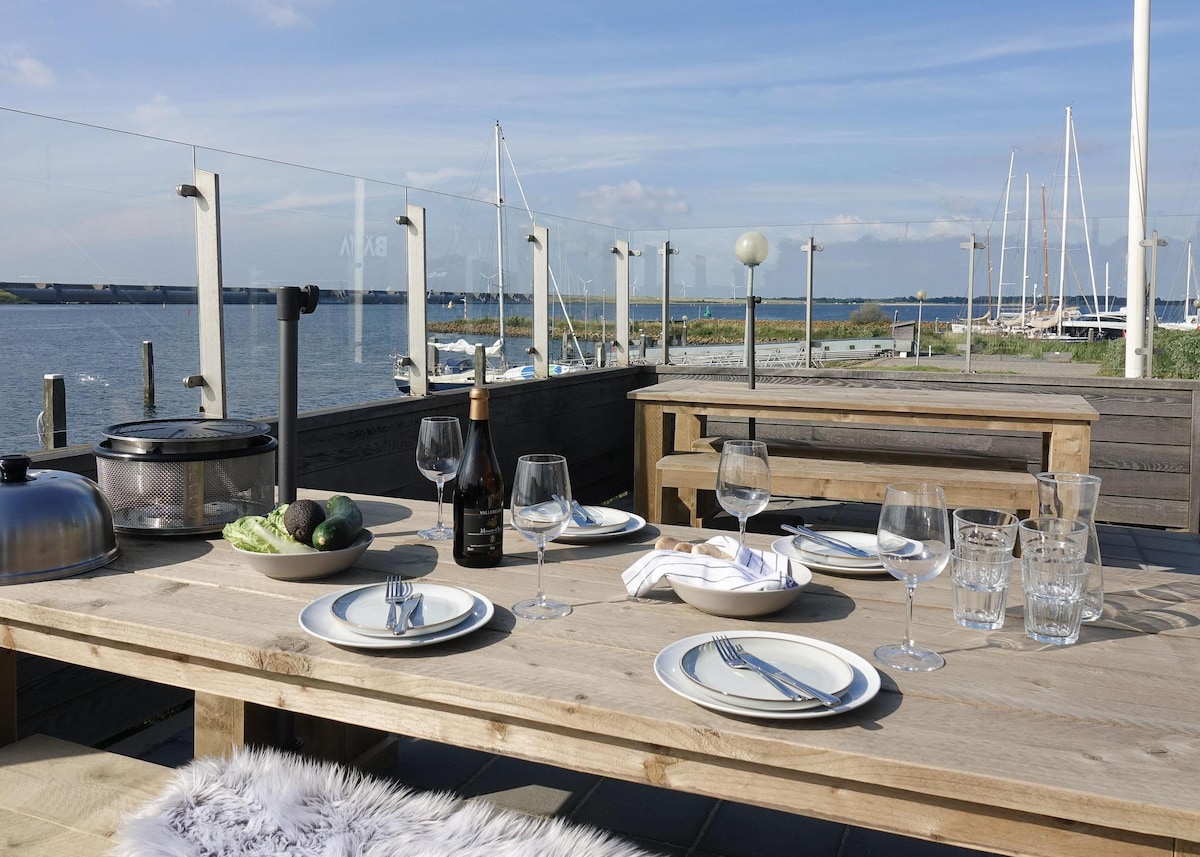 Veldig luksuriøst møblert feriehus rett ved vannet med en 13 meter lang brygge for en seilbåt eller fiskebåt (også til leie). I løpet av et par minutter kan du seile til Volkerak. Vannet er også forbundet med Haringvliet og HD. Huset ligger sentralt til for en dag i Grevelingenstrand 5 (min.) eller Noorzeestrand (20 minutter). Koselige byer på Zeeland ligger heller ikke så langt unna. Byen Rotterdam er populær for turister, ligger bare 25 minutter unna med bil.