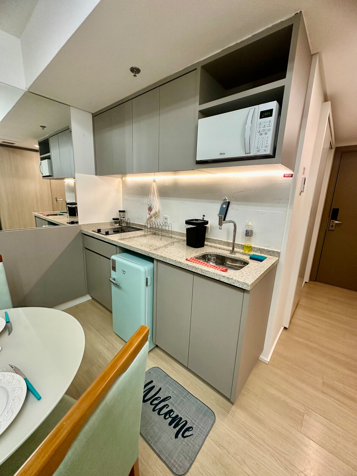 Studio på 39 kvm i Walk Bueno, med privat parkeringsplass og balkong, ideell for opptil to gjester som kommer til Goiânia for arbeid, medisinske avtaler, studier eller besøk hos familie. Komfortable, organiserte omgivelser med en streng rengjøringsstandard. Strategisk beliggenhet i Bueno-sektoren, med enkel tilgang til sykehus og forretningssentre. Leilighet med svømmebasseng, badstue, treningssenter, vaskeri med betaling per bruk og bekvemmeligheten av en dagligvarebutikk. Ideelt for de som prioriterer ekte komfort og en god beliggenhet.