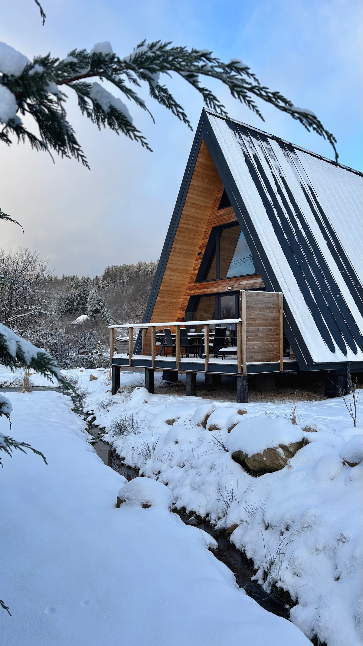 Discover the Atypiques Chalets en A. Ideal for 4 people, located in a quiet village 10 km from Gérardmer. Chalet IORIK aframe, 2 comfortable bedrooms, fully equipped kitchen, large terrace and magnificent Nordic bath with balneotherapy just for you. - ORIGINAL ARCHITECTURE and very HEAVENY - Large suspended TERRACE with Jacuzzi access - Large IGLOO SAUNA for sharing or private use - Just a stone's throw from GÉRARDMER and the SKI SLOPES - Close to ALSACE CHRISTMAS MARKETS