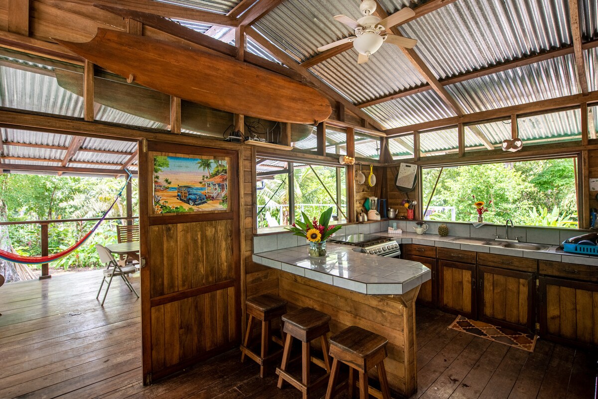 Nydelig strandhus som nyter et av DE beste stedene i Pavones. Tærne i sanden + den drømmende lange venstrehåndtaket er mindre enn 200 meter unna! Beliggende ved elven Rio Claro er det en 1 minutts barbeint spasertur til stranden, 2-5 minutter til alle butikker og restauranter. Nyt privatlivet + fantastiske modne hager, fra hengekøyen eller sofaene! Parkering, utendørs regndusj, brettstativ, godt trådløst nettverk, klimaanlegg på soverommene, varmt vann og kanskje noen ferske kokosnøtter, yuca, ananas eller mangoer, avhengig av tiden på året du besøker!