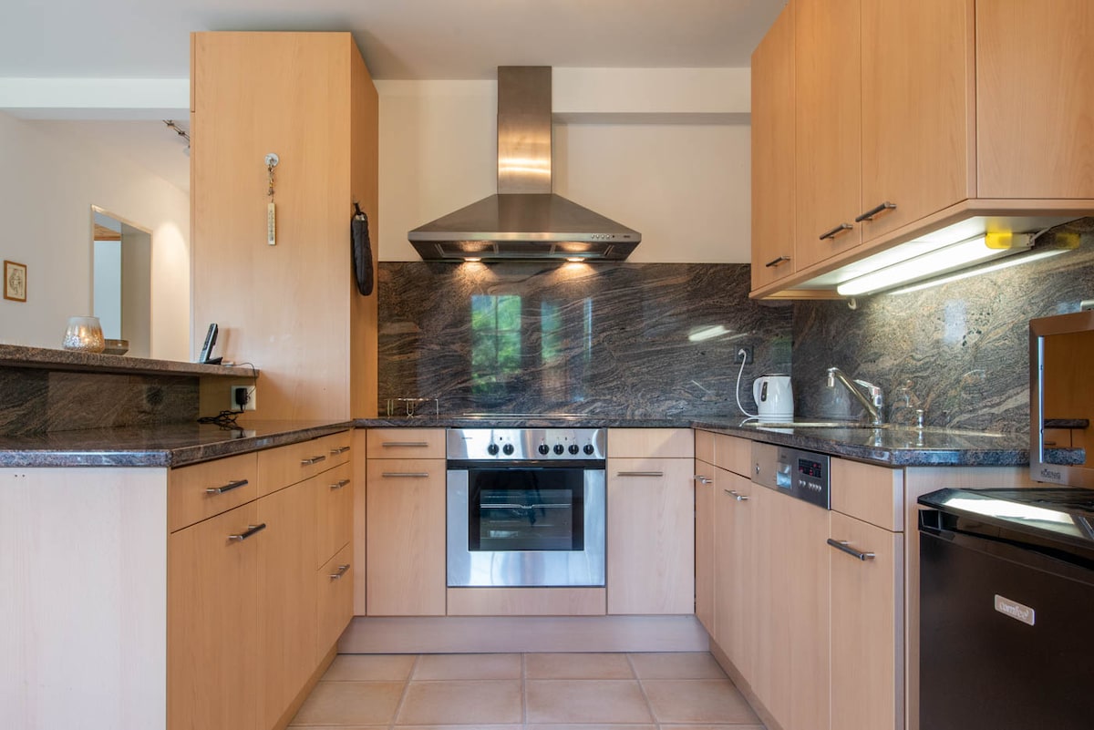 Kombinert stue/soveplass med polstret suite, satellitt-TV, Blueray-spiller med DVD, én fransk. Seng (140 x 200 cm) og én enkeltseng. kjøkken med oppvaskmaskin, mikrobølgeovn, filterkaffemaskin, Nespresso-kaffemaskin (kapsler), brødrister, fondue-rechaud, spisebord WC/dusj, terrasse vendt sørover, utsikt over seks fjortusenere Internett-tilgang WLAN (uten garanti) elektrisk oppvarming, kjæledyr ikke tillatt felles skirom/vaskerom med vaskemaskin, lekeplass