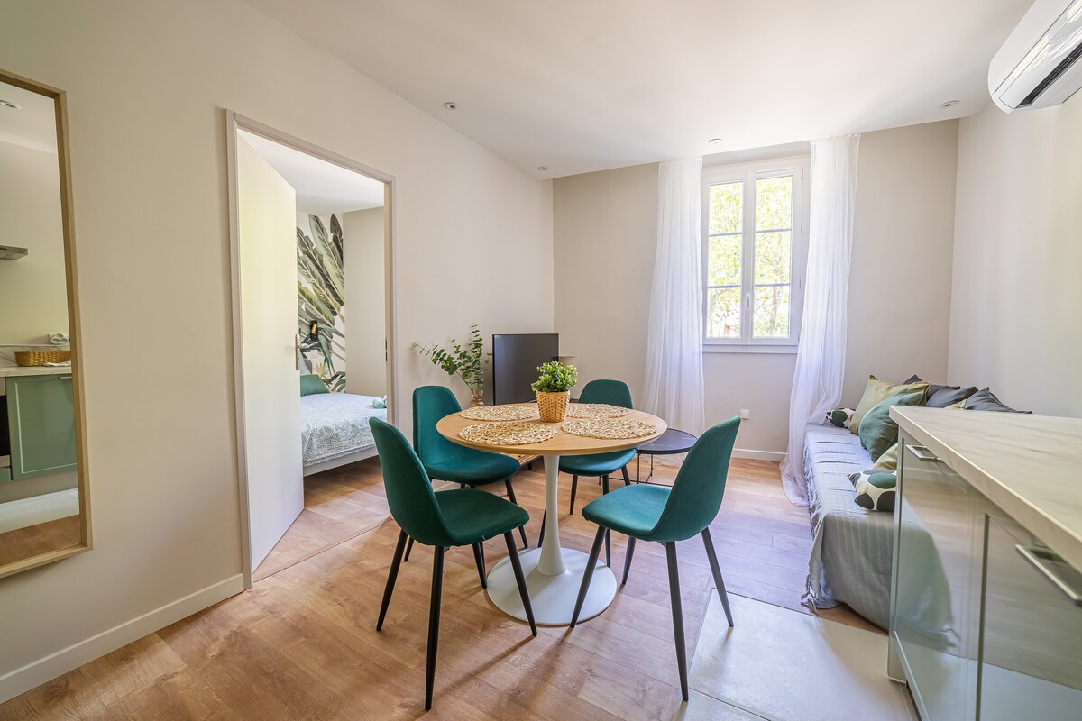 Nyt elegant overnatting i sentrum av landsbyen Gonfaron. Vi tilbyr deg dette lille studioet på 15 m2 med sin sovesofa med enkel åpning og madrassen på 18 cm tykk,et kjøkkenkrok med sin doble peis induksjonsplate, de øverste kjøleskapsoppbevaringsmøbler, mikrobølgeovngrill , avtrekkshette og rund vask i rustfritt stål. Bad med vask, toalett.