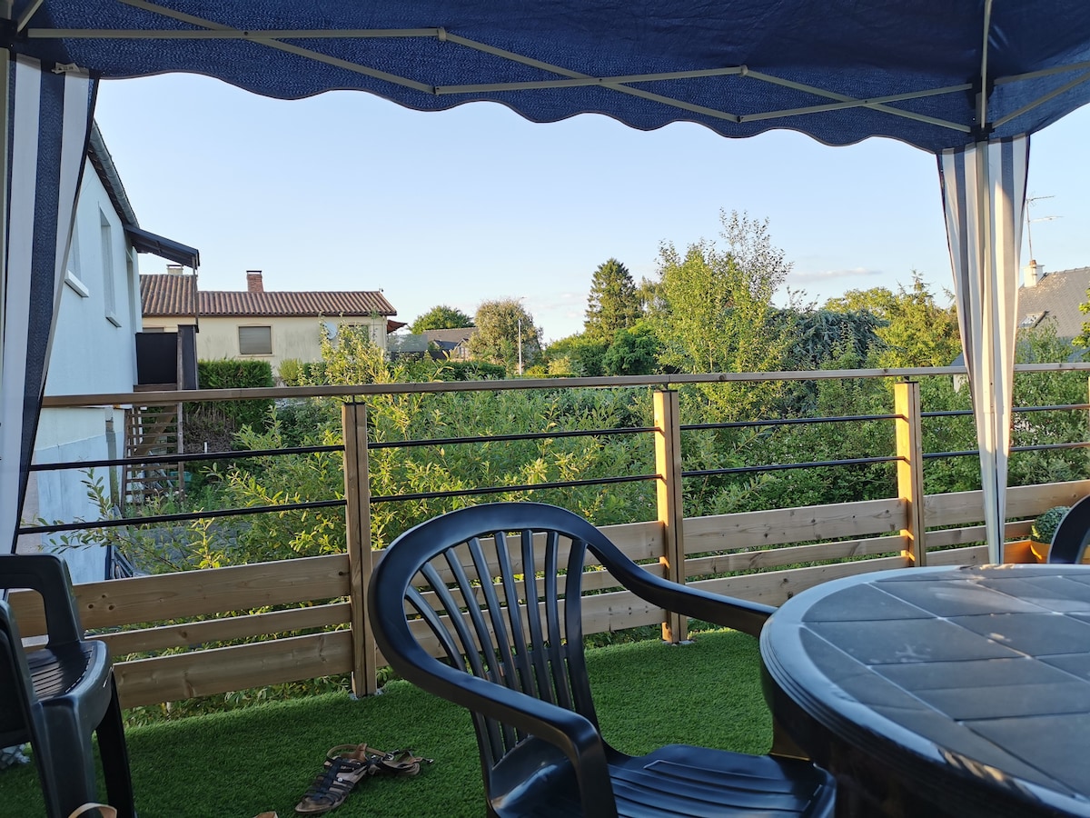 Fullstendig renovert hus, som ligger i nærheten av sentrum, parkering foran boligen, terrassen og hagen. Overnattingsstedet har et utstyrt kjøkken, stue, spisestue, toalett og dusjrom i første etasje. To soverom og bad med toalett ovenpå. Sovesofaen er kun tilgjengelig på forespørsel ved bestilling for bestillinger på fire personer eller flere. Kjæledyr er velkomne (se husreglene). Gi oss beskjed om antall kjæledyr.
