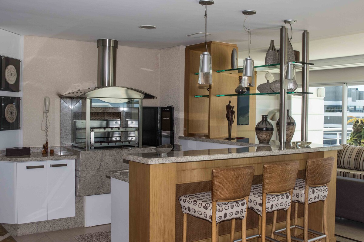Bo ved den vakre havet i Jurerê (Florianópolis, SC) i en moderne loftsleilighet med amerikansk kjøkken, dobbeltseng, split klimaanlegg, 40" LED kabel-TV med YouTube og Netflix, minibar, komfyr, mikrobølgeovn, varmt bad og stor balkong med sideutsikt over havet.