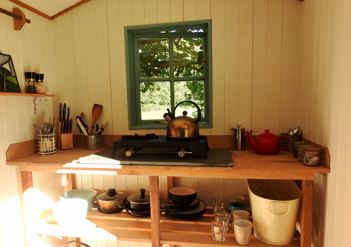 Lad batteriene på dette unike og rolige overnattingsstedet i Brecon Beacon nasjonalpark. Fantastisk utsikt over Usk-dalen, mindre enn 1,5 km å gå til det nydelige Sugar Loaf-fjellet. Den vakre byen Crickhowell ligger tre miles unna, og markedsbyen Abergavenny ligger fem miles unna. Ligger på en gård i åsene. To lokale puber innenfor gangavstand. Unnslipp hverdagen og utforsk Wales. :) Vær oppmerksom på at det ikke er noe badekar eller garderobeskap. Trådløst nettverk tilgjengelig, men ingen jordbasert TV-signal.