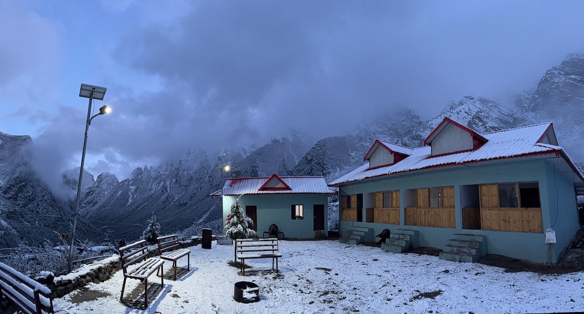 This Homestay is located in the Merag Valley-Village, a picturesque and tranquil property surrounded by lush pine and apple trees, situated just 5 km, a 15 min drive from Joshimath on Malari-Tapovan Road, boasting stunning and sweeping vistas of the Himalayan range. Discover the perfect blend of comfort and nature at our property—your peaceful retreat and gateway to mountain adventures. Book now and unwind in serene mountain surroundings!