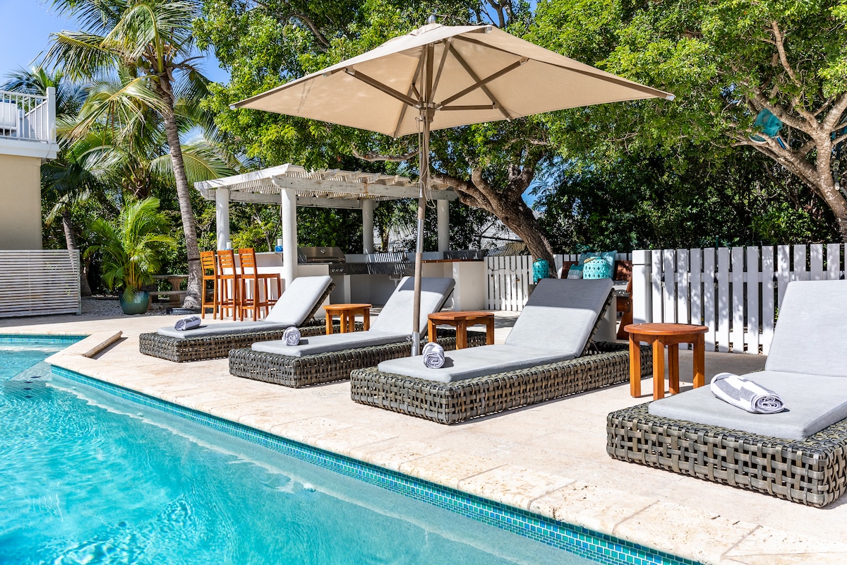 Denne villaen ligger ved en fredelig kanal i et rolig, naturskjønt område, og tilbyr en avslappende ferie omgitt av natur. Gjester kan se på fisk og skilpadder rett fra tiki-baren på den private bryggen, eller benytte seg av gratis kajakker og padlebrett for å utforske det rolige vannet i sitt eget tempo. Hjemmet på to nivåer har lyse, luftige oppholdssteder og havutsikt som bringer kystskjønnhet inn i hvert øyeblikk av ferien på Turks- og Caicosøyene.