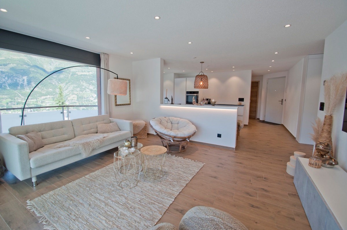 Velkommen til Bergklang, din stilfullt innredede leilighet i Grächen. Her møter moderne komfort alpinnaturen: direkte fra sengen kan du nyte en fantastisk utsikt over Valais-fjellene. Enten du går tur, sykler eller står på ski – etter en aktiv dag finner du fred og ro her. Varme og ekte fjellatmosfære. Nyt møbler av høy kvalitet, naturlig Materialer og den perfekte beliggenheten for din alpine drømmeferie.