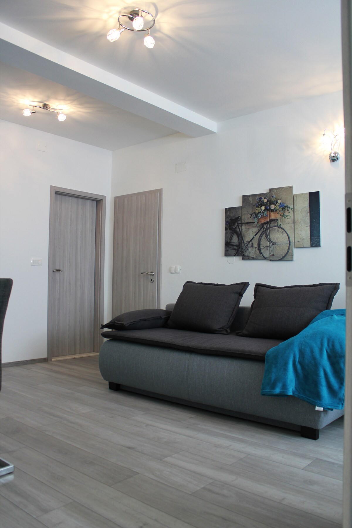 Leilighet Gabriela har 120 kvadratmeter, stor balkong, tre rom, stort nytt, moderne kjøkken, stor stue, ett bad og toalett og ett toalett til. Det er en stor gårdsplass foran huset og privat parkering. Den har også en hage der en stor kirsebær, sitron, lavendel, rosmarin, bambus, aprikos osv. er plantet. Gjestene kan bruke hagen og stedet foran ( og bak ) huset. Gå, sitt, røyk, bruk grill osv.