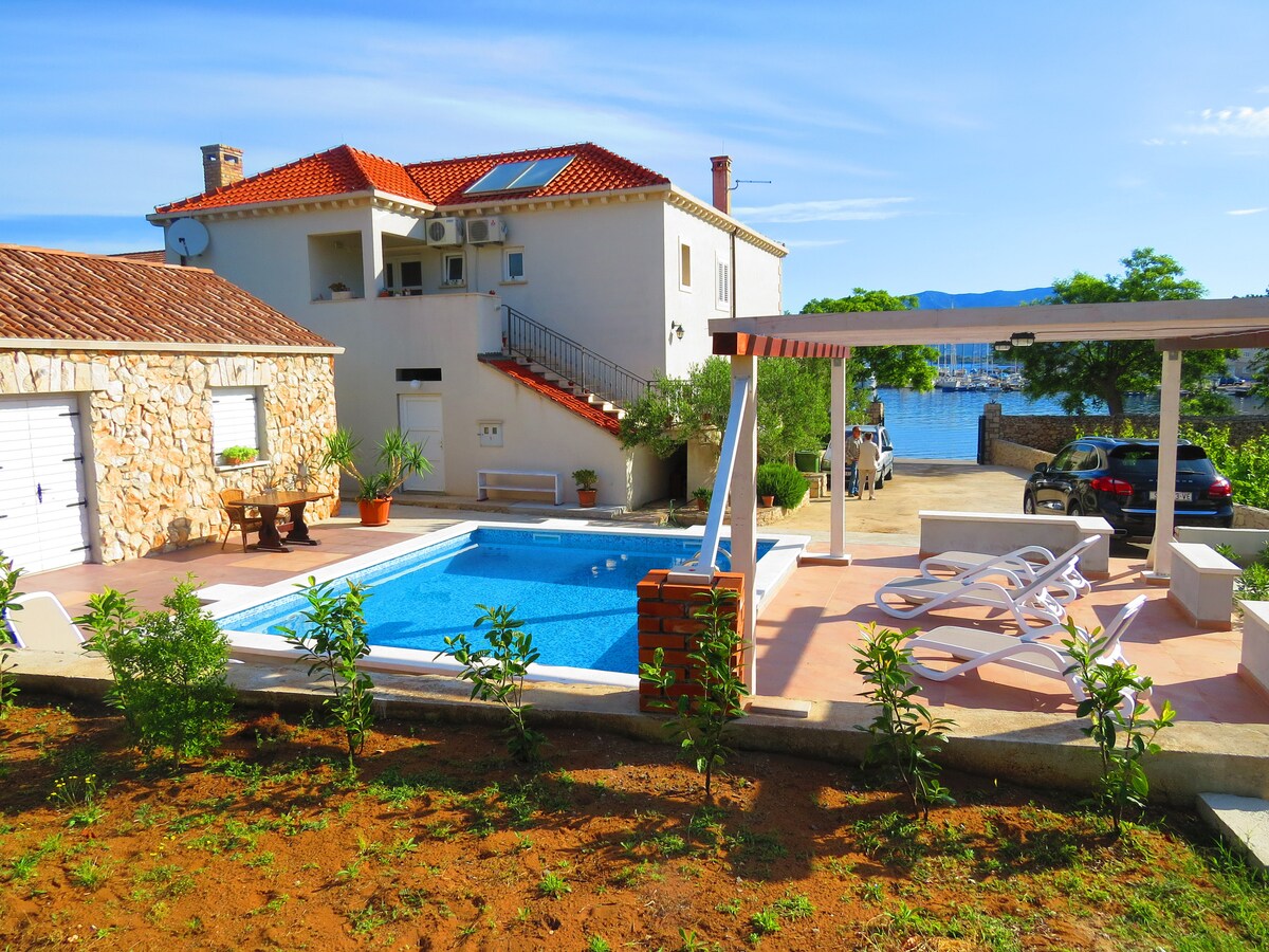 Antikt restaurert hus,komfortabelt å hvile med to rom,kjøkken og spisestue,vakker terrasse med havutsikt. FASILITETER. Hage(ryddig),terrasse,parkering (antall parkeringsplasser:3,avstand fra bygningen: 80 m), grill,paraply,solsenger. AVSTANDER: Sjø: 10 m. Strand: 1 meter. Sentrum: 14 km Butikk: 9 km Akutt medisinsk behandling: 14 km Apotek: 14 km. Valutaveksling: 10 km. Minibank/bankmaskin: 14 km Turistinformasjon: 14 km Med alt dette produserer og selger vi tørr,hvit Pošip-vin og svart Plavac mali!
