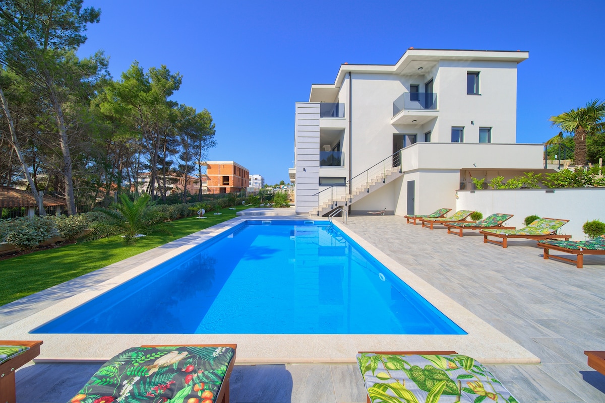Den vakre moderne Villa Sara med basseng og lekerom er en ekte oase av fred hvor hver gjest vil nyte sitt opphold og glemme hverdagens forpliktelser. Villaen er bygget på to etasjer og i første etasje er det en stor stue, spisestue, kjøkken, korridor og bad med badekar, og i 1. etasje er det 4 soverom, hvert med eget bad med dusj. To dobbeltrom har også tilgang til en stor terrasse og utsikt over havet. Villaen er fullt utstyrt med alt som trengs for en behagelig ferie