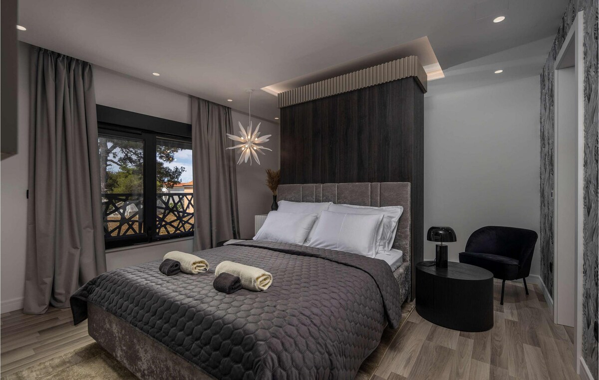 Eksklusiv, luksuriøs, helt ny leilighet ved stranden for fire personer @povljana_bythesea. PRIVAT: terrasse med evighetsbasseng, badstue, minigym, hage. Ny, luksuriøst møblert og utstyrt leilighet med vakker anlagt hage og en oppvarmet utedusj, en overbygget terrasse med fantastisk utsikt over havet og et oppvarmet evighetsbasseng (kun tilgjengelig for gjester i denne leiligheten). Klimaanlegg og Smart TV med Netflix og EVO TV i stuen og begge soverommene. En overbygd parkeringsplass.