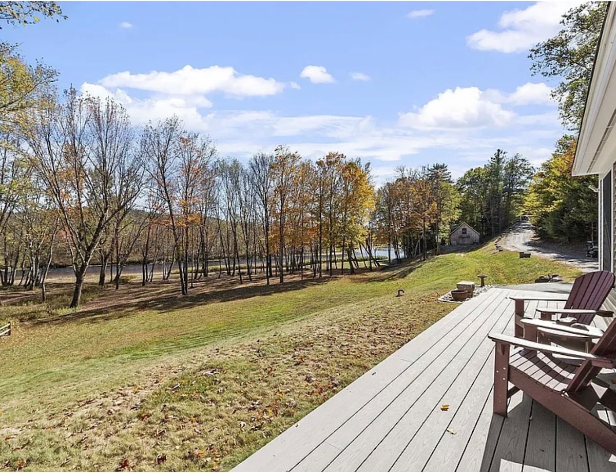 Over 700 ft of private shoreline offers a unique opportunity to experience the Pemigewasset River. The shallow riverbank offers accessibility to most guests. 3 kayaks are available for even more fun! The expansive backyard is perfect for yard games, to lounge in the shade of the trees or to toast marshmallows at the fire pit. With 5 separate sleeping areas and 3 full baths guests have ample space to call their own. All living spaces are adorned with plush furnishings to ensure your comfort!