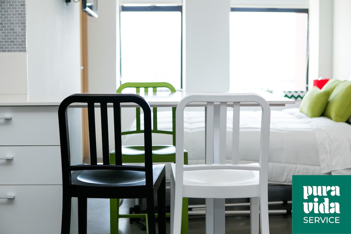 Ekstremt trygg dørvaktbygning som ligger i et av de 50 kuleste nabolagene i verden ifølge Time Out Magazine. Byens beste beliggenhet! Bli mottatt av ansatte som gjør det enkelt å sjekke inn med en smartlås til leiligheten. Nyt utsikten over en fantastisk solnedgang i boblebadet, og gjør deg klar til å spise på en av de 70 restaurantene i området. Deretter kommer du tilbake for å sove i en ekstremt komfortabel queensize-seng. Våkn opp og lag en utsøkt kopp gourmetkostaricansk kaffe.