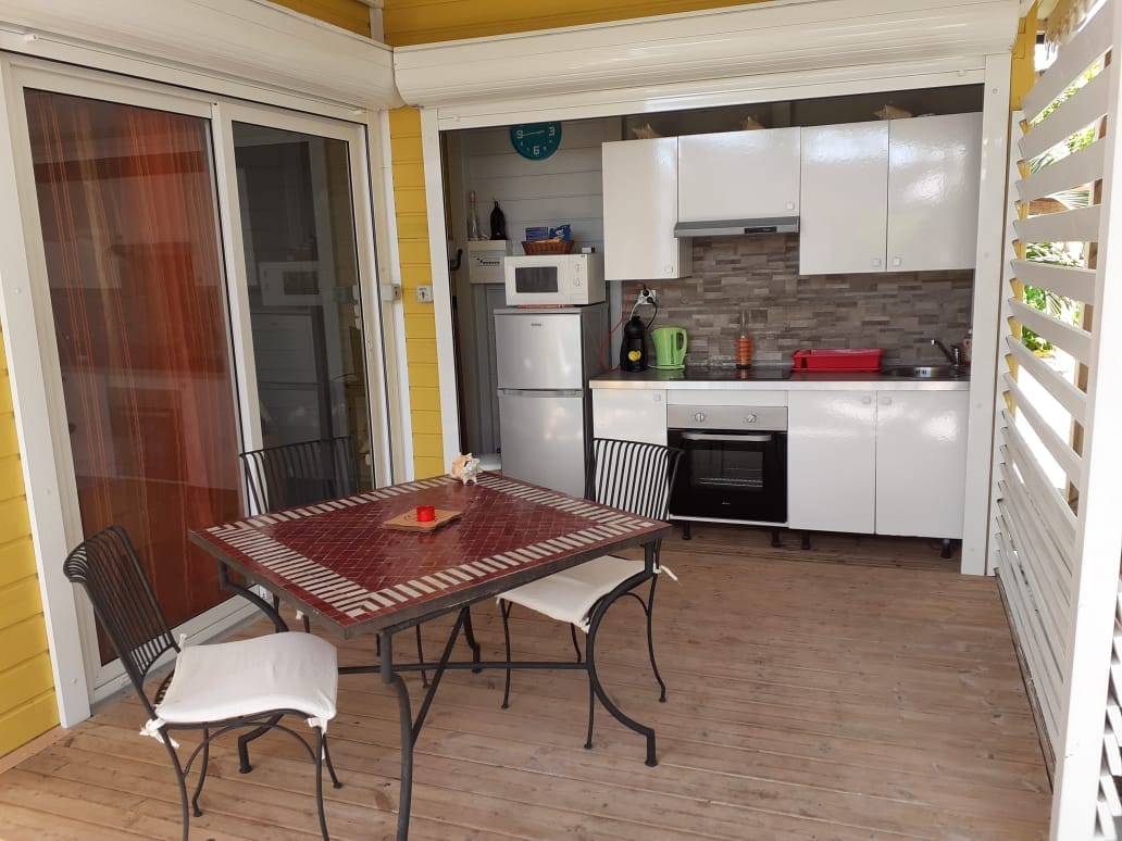 TI'KAZ Cannelle er en bungalow i kreolsk stil i tre og tropiske farger som kan huse et par med et barn. Utenfor er det en romslig treterrasse som kombinerer en spiseplass, en komfortabel stue og en hengekøye med utsikt over det private bassenget og hagen med unike essenser: banan, papaya, hibiscus ... Avslapning og forandring garantert!