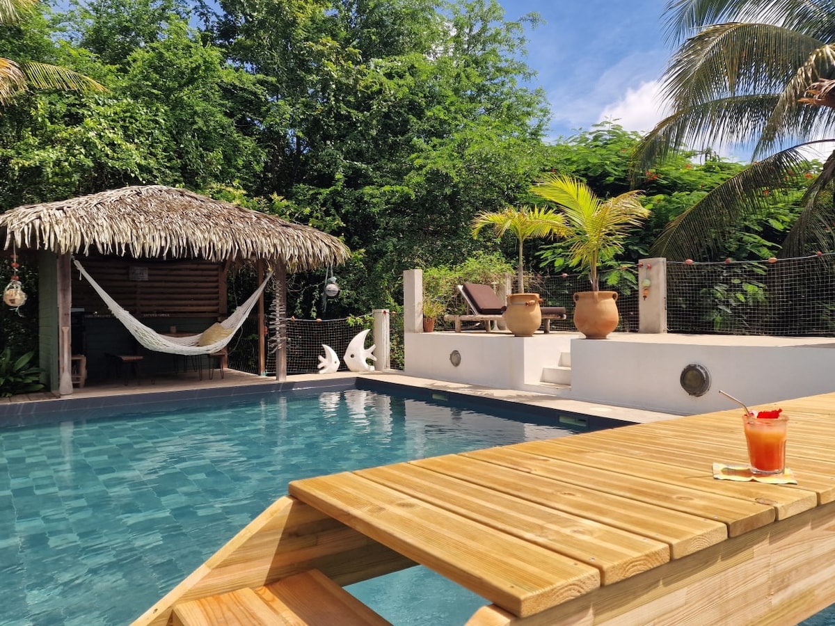 Gjester setter pris på Kjøkken, Trådløst nettverk og Svømmebasseng på utleiesteder i Grand-Bourg