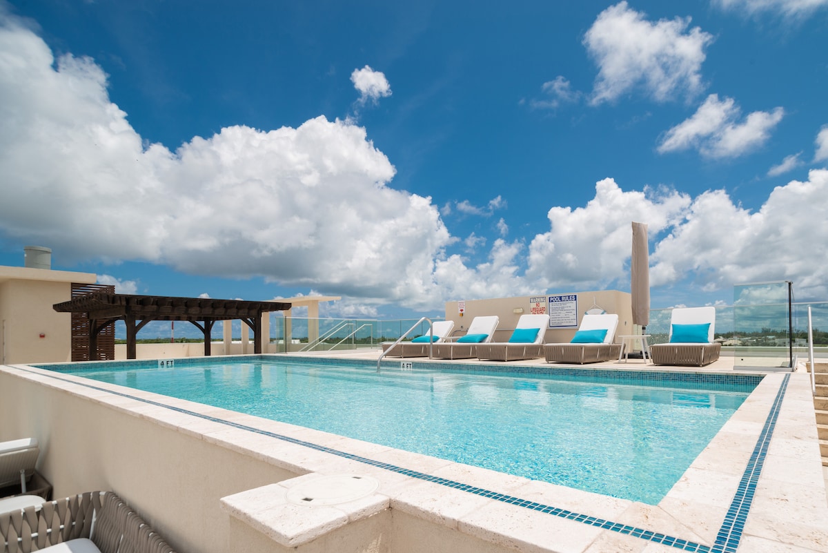 Moderne 1BR | Basseng og grill | Trinn til 7 Mile Beach