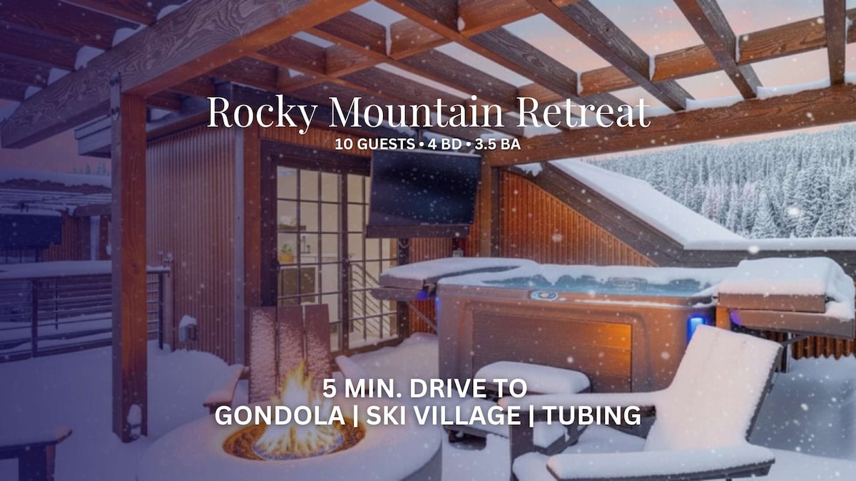 Velkommen til fjellferiestedet ditt i Winter Park – perfekt for familieferier og gruppeeventyr! Dette luksuriøse rekkehuset ligger ved Fraser River med fantastisk utsikt over fjellene, og kombinerer komfort og utendørs moro: • 10 sengeplasser | 4 soverom | 5 senger | 3,5 bad • Takterrasse med boblebad, bålplass • Gourmetkjøkken med Bosch-apparater. • Trinn til stier og minutter til Winter Park Resort (skytteltilgang). • kjæledyrvennlig og familievennlig (sprinkelseng, barnestol, spill) • Oppvarmet garasje med elbillader og smarthjemsteknologi