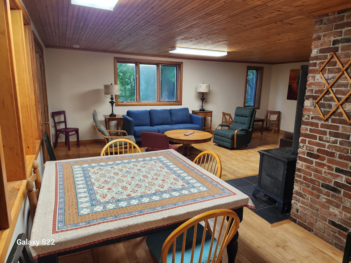 Maine Forest Retreat: restaurert, fredelig hjem i skogen på «Downeast» -kysten av Maine, unna støytrafikkmengder. Dette romslige hjemmet med fire soverom og to etasjer har plass til naturelskere, familier og små grupper for ferier eller besøk til det naturskjønne området vårt. Nedenunder gir et stort, åpent sentralt område for lek, yoga og sosialt samvær, med fleksible, lett flyttbare møbler for å imøtekomme forskjellige aktiviteter. 5 miles til Cobscook Inst, 12 til Lubec eller Machias, 30 til Eastport, 45 til Calais.