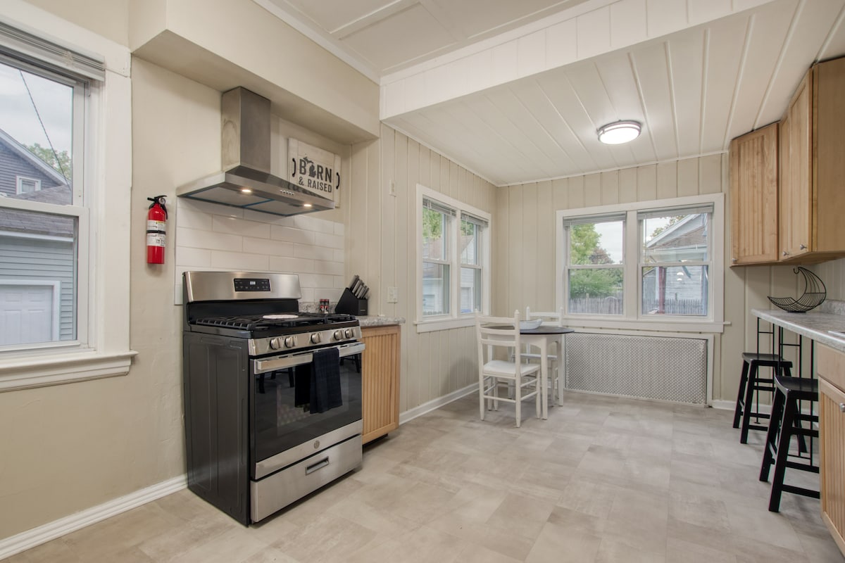 Hjemmet ditt mens du er i Grand Rapids! Dette luksuriøse, røykfrie hjemmet med to soverom er klart for oppholdet ditt! Trådløst nettverk med høy hastighet, 55" smart-TV, luksuriøst sengetøy, gourmetkjøkken, luksuriøst badehåndklær, privat tilknyttet garasje, vaskemaskin i full størrelse og nøkkelfri inngang gjør oppholdet enkelt og komfortabelt. Bare noen skritt fra Breton Village og Calvin University. Et lyst og muntert sted! Hele hjemmet. Kjæledyr er velkomne med forhåndsgodkjenning.