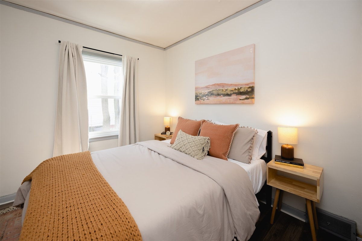Unnslipp det travle bylivet og trekk deg tilbake til din egen private oase med denne sjarmerende Airbnb-en med to soverom. Huset har moderne fasiliteter, samtidig som det har beholdt den opprinnelige 1930-talls karakteren. Du vil nyte et nytt og skinnende rent kjøkken, komplett med alle apparatene og redskapene du trenger. Badet, vaskerommet, spisestuen, lesekroken og stuen har også blitt oppdatert på en vakker måte, slik at du føler deg hjemme fra det øyeblikket du ankommer.