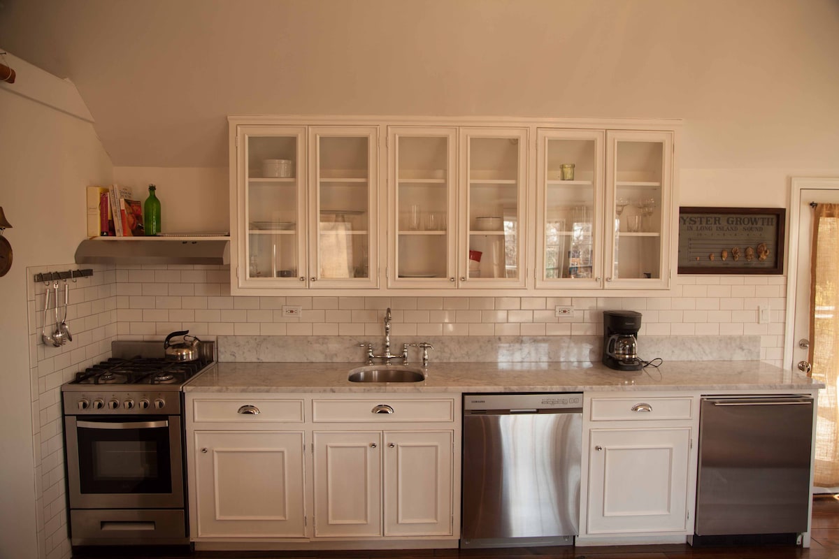 Slapp av i ditt private romantiske tilfluktssted med Canopy Queen Bed & Beautiful moderne bad, én blokk fra stranden, studio i andre etasje med lite kjøleskap, mikrobølgeovn, kaffetrakter, induksjonstopp, SmartTV... Bare syv minutter fra Long Island Railroad, Oyster Bay stopp. I nærheten av restauranter, butikker og tennisbaner. Du kan sykle, svømme, fiske, spille golf, leie kajakker, motorbåter og padlebrett. Besøk Arboretums, historiske steder, parker, gå langs vannet, gå på kinoen i nærheten og mer …