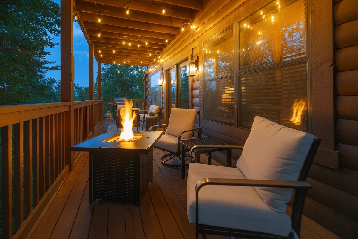 Velkommen til en koselig fjellhytte hvor stille skog, glødende bål og frisk luft fra Smoky Mountain setter tonen for et avslappende opphold nær alt. - soveplass til 6 | 2 soverom | 3 senger | 1 bad - boblebad med fjellutsikt. – Vedfyrte peiser og elektriske peiser inne. – terrasse med bålpanne, hengekøye og uteservering – familievennlig med barneseng, spill, arkade og temarom – kjøkken, vaskemaskin, tørketrommel, trådløst nettverk og dedikert arbeidsplass