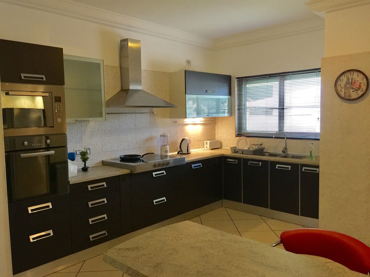 Magnifikk og romslig leilighet med 2 soverom og Kingsize-senger, ideell for korte og lange opphold i Accra. Leiligheten er fullt utstyrt med Netflix, gratis høyhastighets Wi-Fi, AC i alle rom og kjøkken. Laker og håndklær tilgjengelig for gjestene. Hele stedet er privat, romslig og komfortabelt i et veldig fint og trendy nabolag med også privat sikkerhet. Supermarkeder og apotek rett overfor. Kaffebarer og restauranter 2 minutters gang unna. Flyplass 10 minutters kjøring.