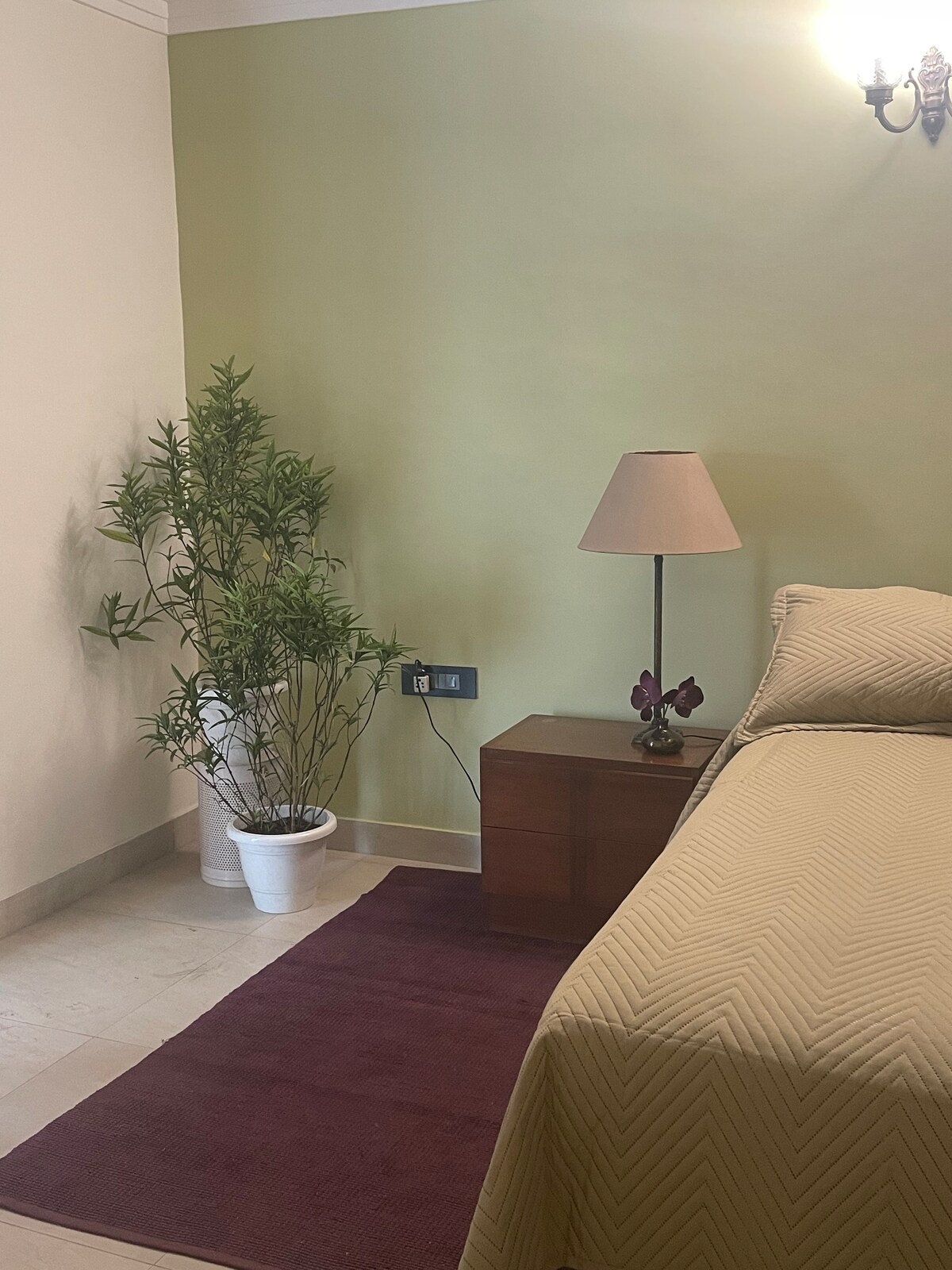 På «H is for Home» tilbyr vi en spektakulært solbelyst, privat leilighet med tre soverom og tre bad, stilig innredning og full service i hjertet av Delhi. Den ligger i en inngjerdet, sikker bygning. Deilig hjemmelaget frokost, te/kaffe er inkludert. Vi tilbyr bil og sjåfør for henting og levering på flyplassen, og reiser innenfor Delhi/NCR til Agra/Jaipur. Enheten ligger i tredje etasje med tilgang via moderne heis. Alle vinduer har gitter, og vi tilbyr superraskt Jio Fiber wifi.