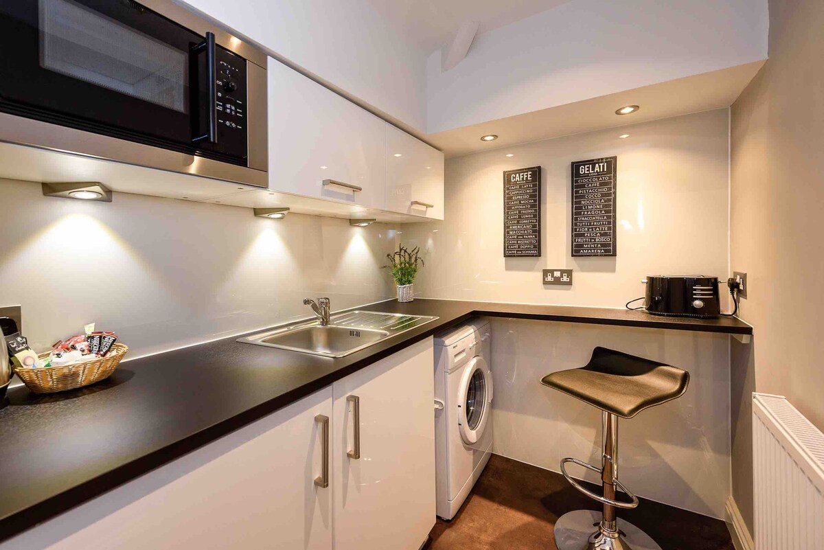 Du bestiller et studio som er et soverom med dobbeltseng og eget bad med walk-in-dusj. Rommet har en liten kjøkkenkrok med alt du trenger for grunnleggende matlagingskrav under oppholdet og et lite spisebord og stoler. Dette er ikke leiligheter, men studioer og er ideelle for jobb eller fritid. Et selvbetjent rom med tilgang til alt sengetøy og rengjøringsprodukter og utstyr under oppholdet. Hvis du vil at vi skal betjene rommet ditt, belaster vi 30 £. Gi oss beskjed dagen før.