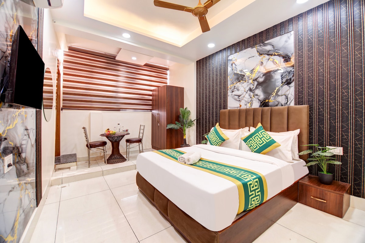 Sarovar-portikoen (Surajkund) Privat betjent leilighet i Sarovar portico, som ligger ved siden av Taj Hotel & Spa (1) – innsjekking uten vert med en nøkkelboks (2) – Stedet er utformet for å være familie- og gruppevennlig. (3) – Kontakt verten via chat før du sender en reservasjonsforespørsel. *{stedet}* (1) .24/7 strømforsyning, [inkludert alle AC-er]