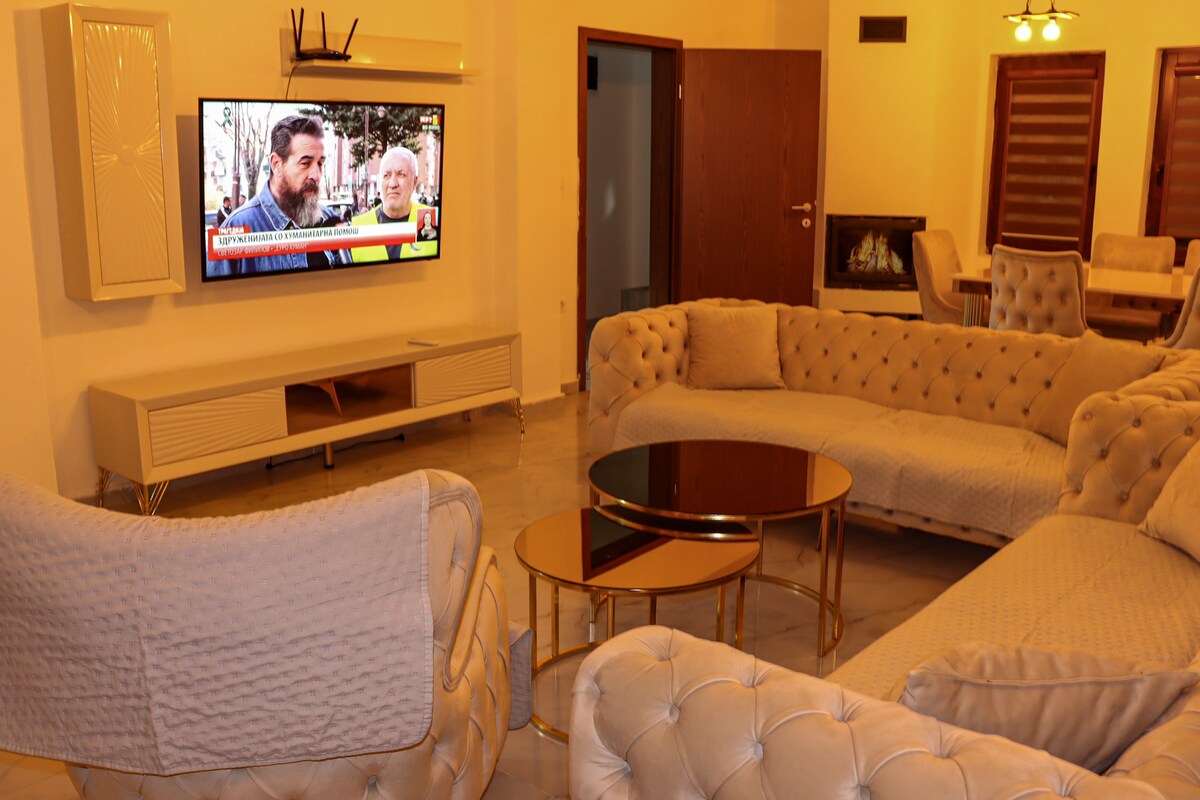 Velkommen til en ekte oase av fred og harmoni, beliggende i Skopjes vakre naturomgivelser. Dette hjemmet tilbyr en sjelden kombinasjon av fredelig boform og nærhet til byens puls. Her våkner du til lyden av fuglesang og duften av naturen, samtidig som du har et av Nord-Makedonias største badeland – et paradis for både barn og voksne – kun ti minutter unna med bil. Til tross for den rolige og avsidesliggende beliggenheten, er du midt i alt på et øyeblikk. Innen 15 minutter kan du nå Skopje sentrum.