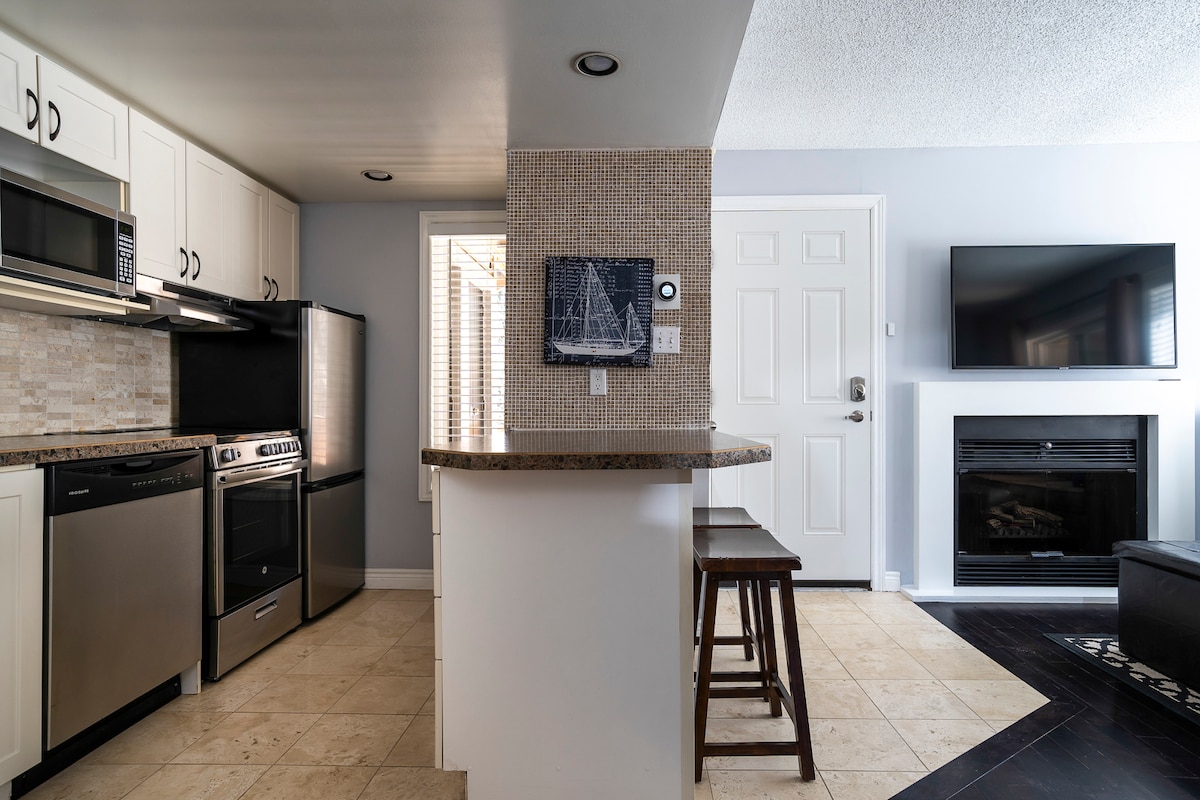 Nyrenovert studioleilighet ved fjellsiden North Creek Resort med: * kingsize-seng * SMART-TV, High-Speed Rogers Ignite WIFI og TV. * dobbel uttrekkssofa * ombygd toalett *Utstyrt kjøkken med Keurig * Moderne, stilig innredning *Transporttjeneste. * Badestamp/boblebad året rundt *Basseng (planlagt å være åpent fra fredag 8. mai 2026 til tirsdag 13. oktober 2026) *Tennisbaner * Ski eller gå tur inn/ut til North Hill (turstier, middels til avansert dagtidsskiing)!