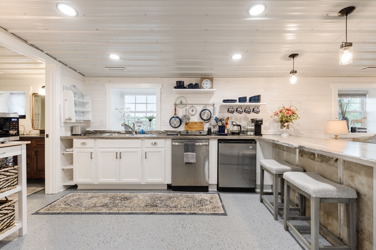 To soverom – én kingsize-seng og én queensize-seng, ett bad. Effektivt kjøkken (vi tester et ekstra rom som vi nylig har lagt til som et annet soverom som et ekstra bonusrom). Det vil bli lagt til 100 dollar ekstra separat av verten for bruk av tredje soverom – minimum to netter. Frittstående vaskerom på eiendommen hvor naturen omgir deg med ekstra sitteplasser og spisestue utenfor. Fredelig og sentralt plassert tre engelske mil fra Tryon International Equestrian Center TIEC og lokale vingårder.