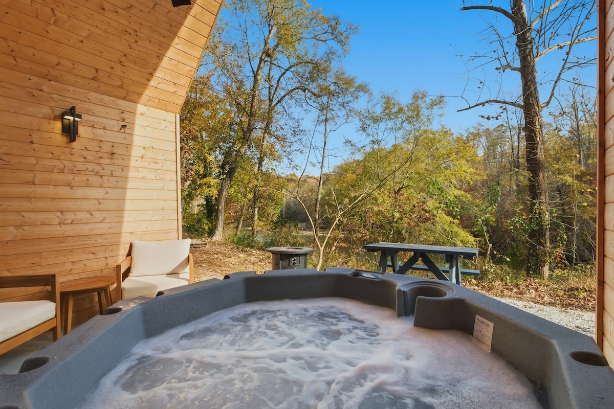 Wake up to the sound of the river at this stunning modern cabin tucked along the banks of the Saluda. With your own private Hot Tub facing the river, Just six minutes from downtown Greenville, this peaceful retreat features soaring wood ceilings, sleek design, and floor-to-ceiling views that bring the outdoors in. Enjoy an on-site restaurant, or explore top dining and boutique shopping just minutes away. Whether you’re here to unwind or explore, this riverside escape delivers!